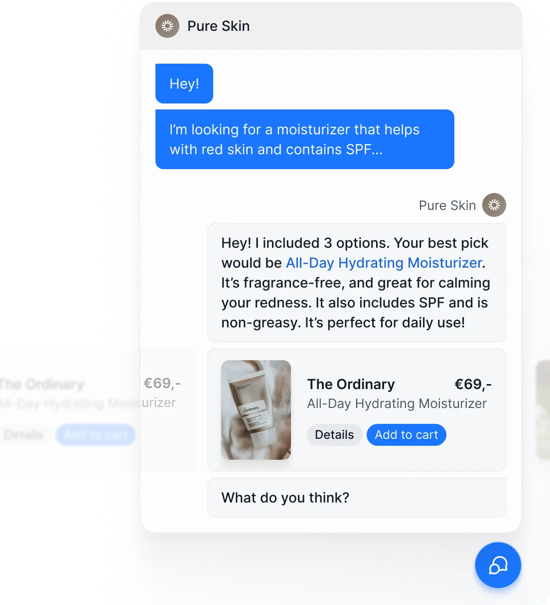The AI agent offers product advice and answers questions exactly when your website visitors need them, even when you might otherwise miss the opportunity, building trust that can increase conversion rates by up to 30%.