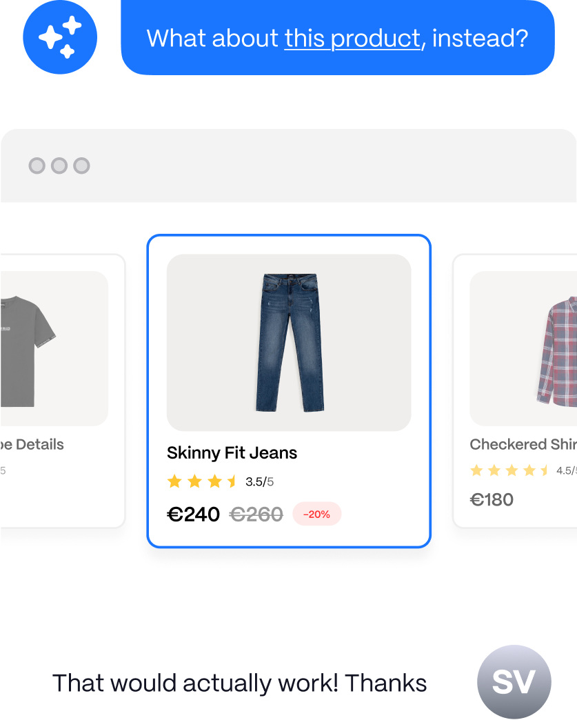 AI suggests the product that best fits the customer’s needs, instantly.